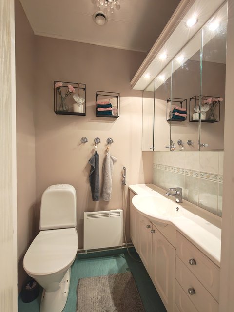 - Suihku, pesukoneliitäntä, ja lattialämmitys