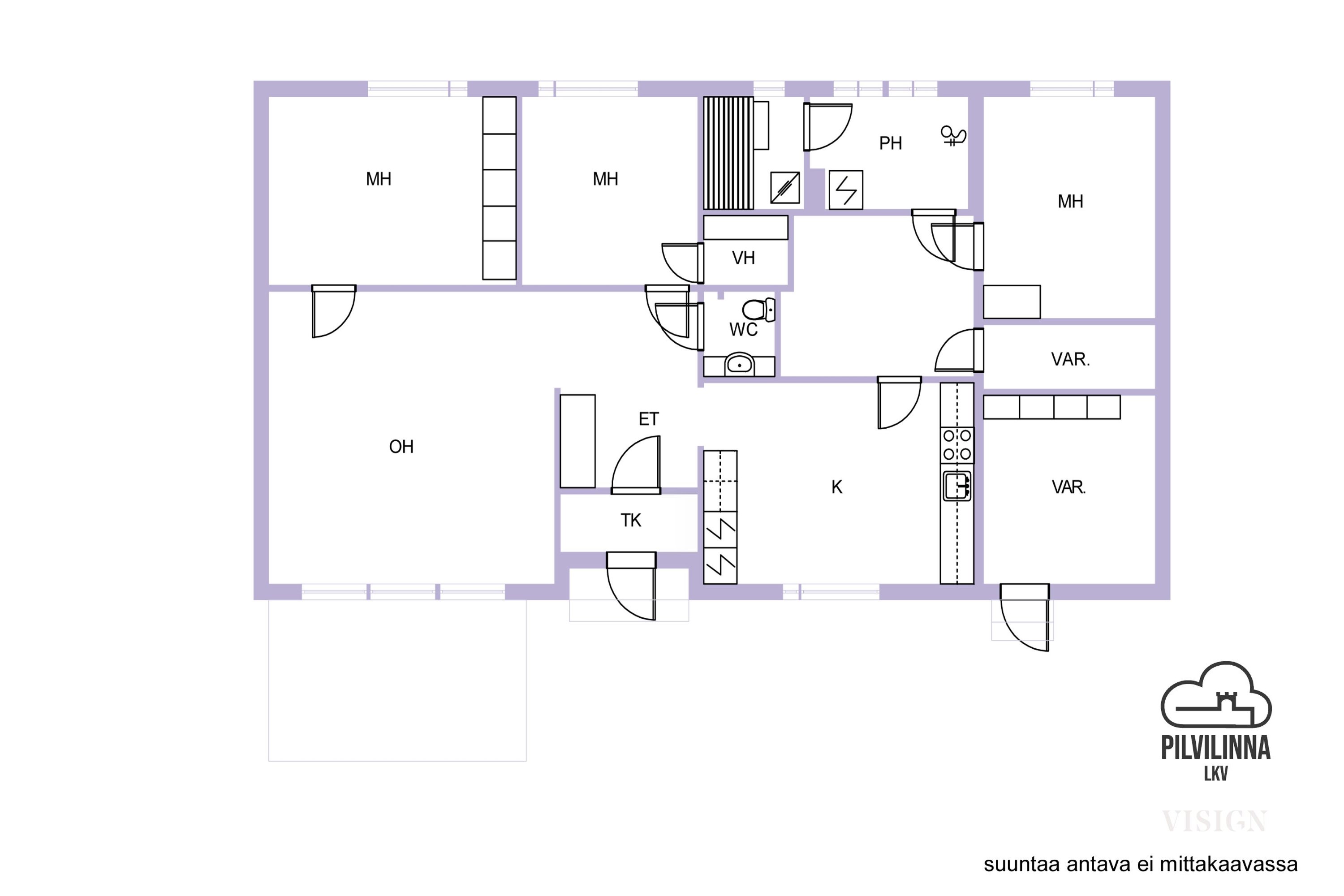 - Pinta-ala ei ole tarkistusmitattu ja todellinen pinta-ala voi olla suurempi tai pienempi, kuin ilmoitettu