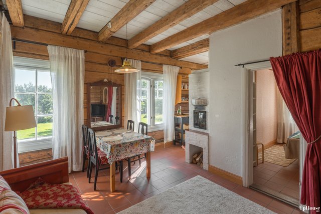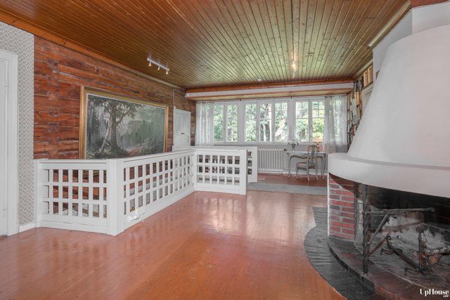 - Kaikissa asuintiloissa seinät on pääosin tapetoitu. Joissakin tiloissa jykevät punahonkahirret ovat esillä.
