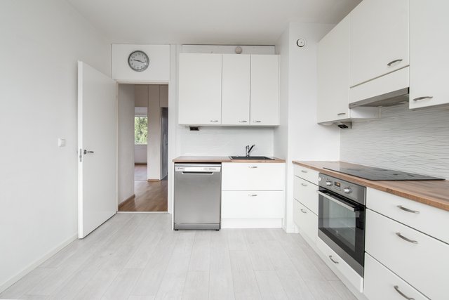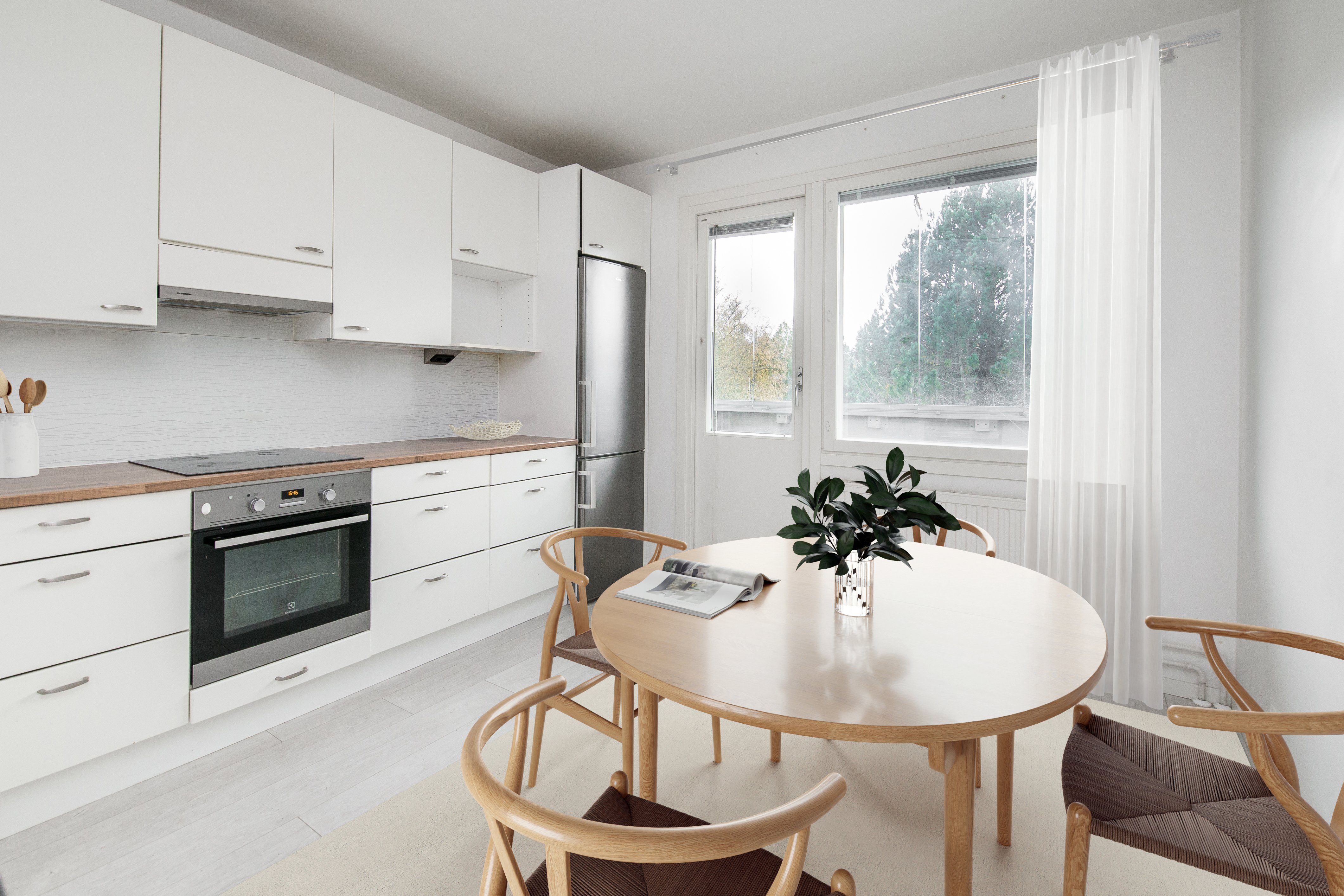 Asunnossa on kaksi makuuhuonetta, viihtyisä olohuone ja keittiö, jossa on kaikki tarvittavat kodinkoneet. Kylpyhuoneessa on lattialämmitys ja pesukoneliitäntä. Laminaattilattiat ja tapetoidut seinät tuovat asuntoon raikkaan ilmeen.