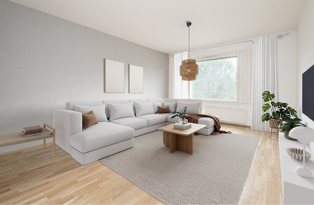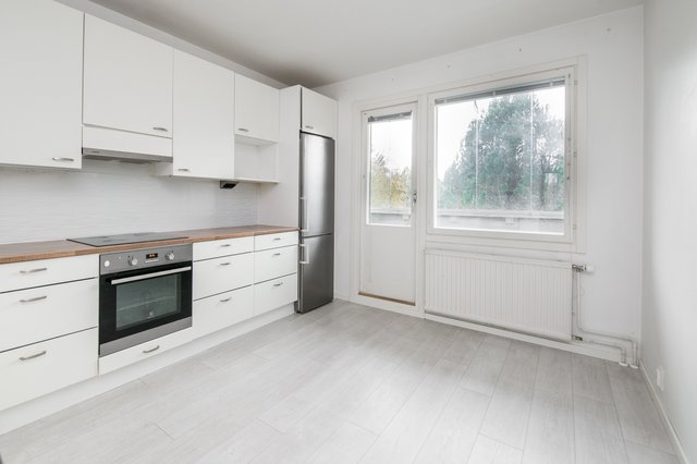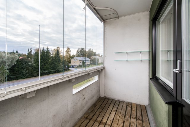 Valoisa ja tilava kolmio Huutoniemellä, Vaasan Kuninkaantiellä. Tämä 72,5 neliömetrin asunto sijaitsee kolmannessa kerroksessa ja siinä on lasitettu parveke, josta avautuvat kauniit näkymät.