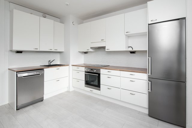 - Jääkaappipakastin, uuni, liesi, liesituuletin, ja astianpesukone