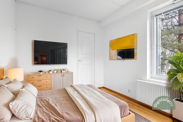 Kodin keskiössä on olohuoneen ja avokeittiön muodostama valoisa ja avara kokonaisuus, josta on käynti reilunkokoiselle etelään avautuvalle terassiparvekkeelle. Oma sauna tuo arkeen ripauksen luksusta, ja parannetulla äänieristyksellä toteutettu makuuhuone palvelee mainiosti esim. pariskuntaa vuorotyön arjessa. Asumismukavuutta lisää myös lattialämmityksellä varustettu tilava kylpyhuone. Säilytystilojen tarpeeseen vastauksen antaa makuuhuoneen yhteydessä oleva ikkunallinen vaatehuone sekä taloyhtiön yhteisistä tiloista löytyvä häkkivarasto.