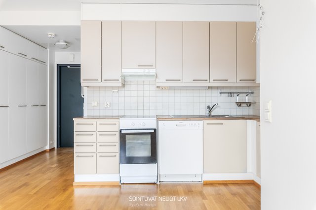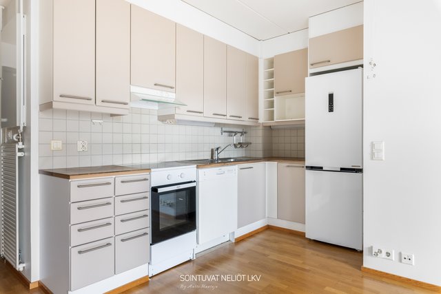 - Jääkaappipakastin, liesituuletin, astianpesukone, ja kaapistot