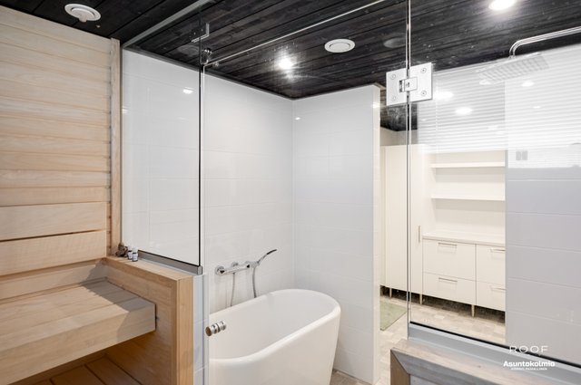 Tervetuloa As Oy Oulun Metsäretkeen, tähän vuonna 2018 valmistuneeseen yhtiöön! Asuntoon on tehty rakennusvaiheessa todella runsaalla kädellä muutostöitä. Koko Puustellin laadukas keittiö on räätälöity toiveiden mukaan, kuivien tilojen lattiat ovat joko kalanruotokuvioista laminaattia tai laattaa, eivätkä pesutilatkaan ole säästyneet muutostöiltä. Molemmista kerroksista löytyy kylpyhuoneet ja alakerrassa sijaitsee myös erillinen wc sekä kodinhoitohuone.