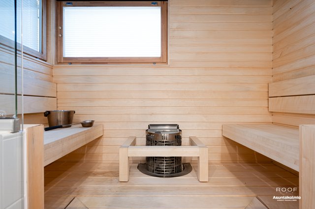 - Lämmin varasto ulko-oven vieressä (kaukolämpö). Väestönsuojassa huoneistolle varattu tila säilytykselle. Kiinteät kaapistot. Vaatehuone (kiinteät säilytysjärjestelmät kuuluvat kauppaan)