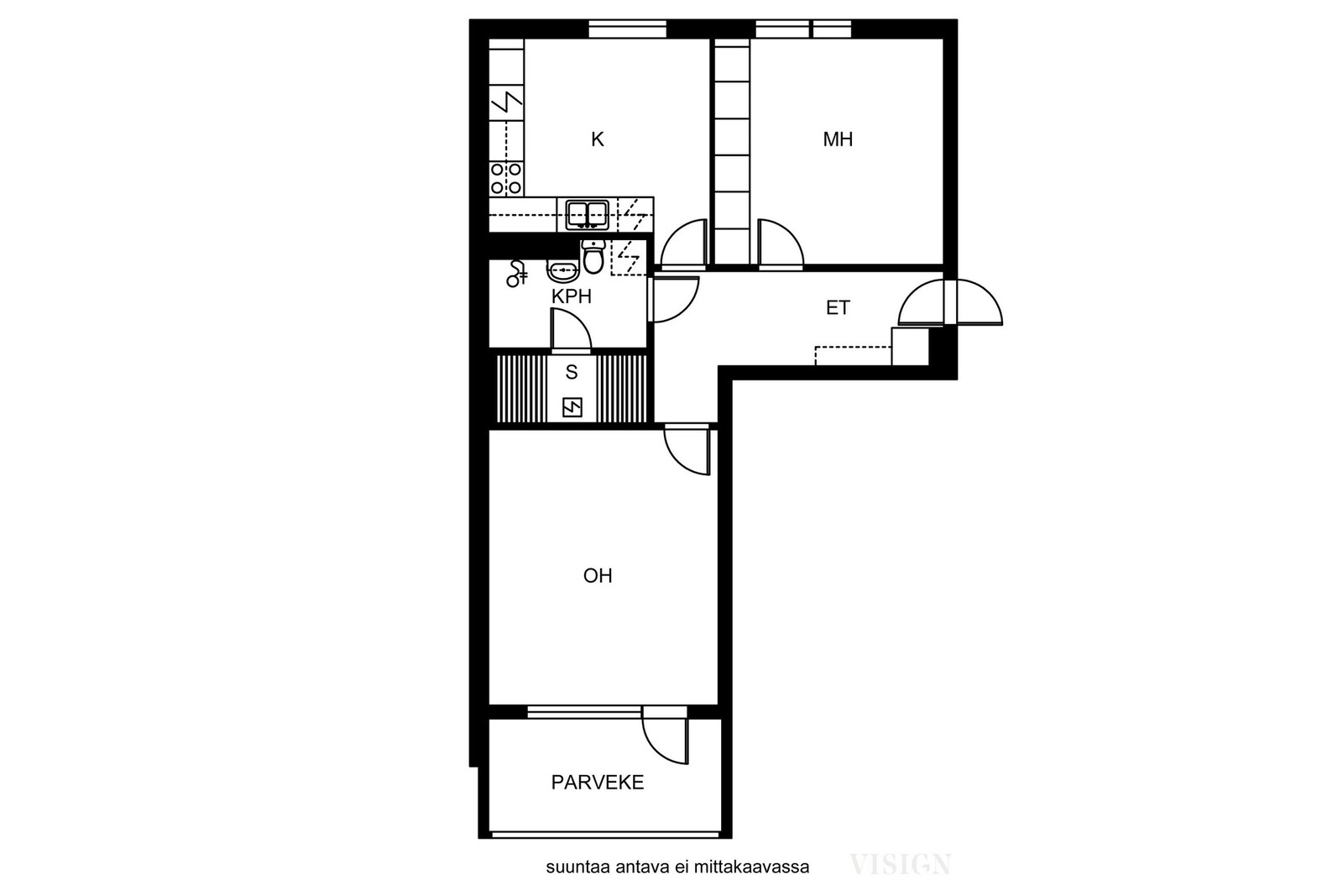 - Mainittu pinta-ala saattaa tämän ikäisessä kohteessa poiketa olennaisesti nykyisten standardien mukaan laskettavasta asuinpinta-alasta. Todellinen asuinpinta-ala voi olla yhtiöjärjestyksessä, isännöitsijäntodistuksessa ja esitteessä mainittua pienempi tai suurempi.