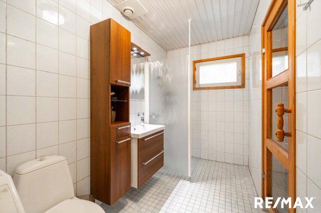 - WC-istuin, suihku, lattialämmitys, peilikaappi, pesuallas, allaskaappi, ja bidee-suihku