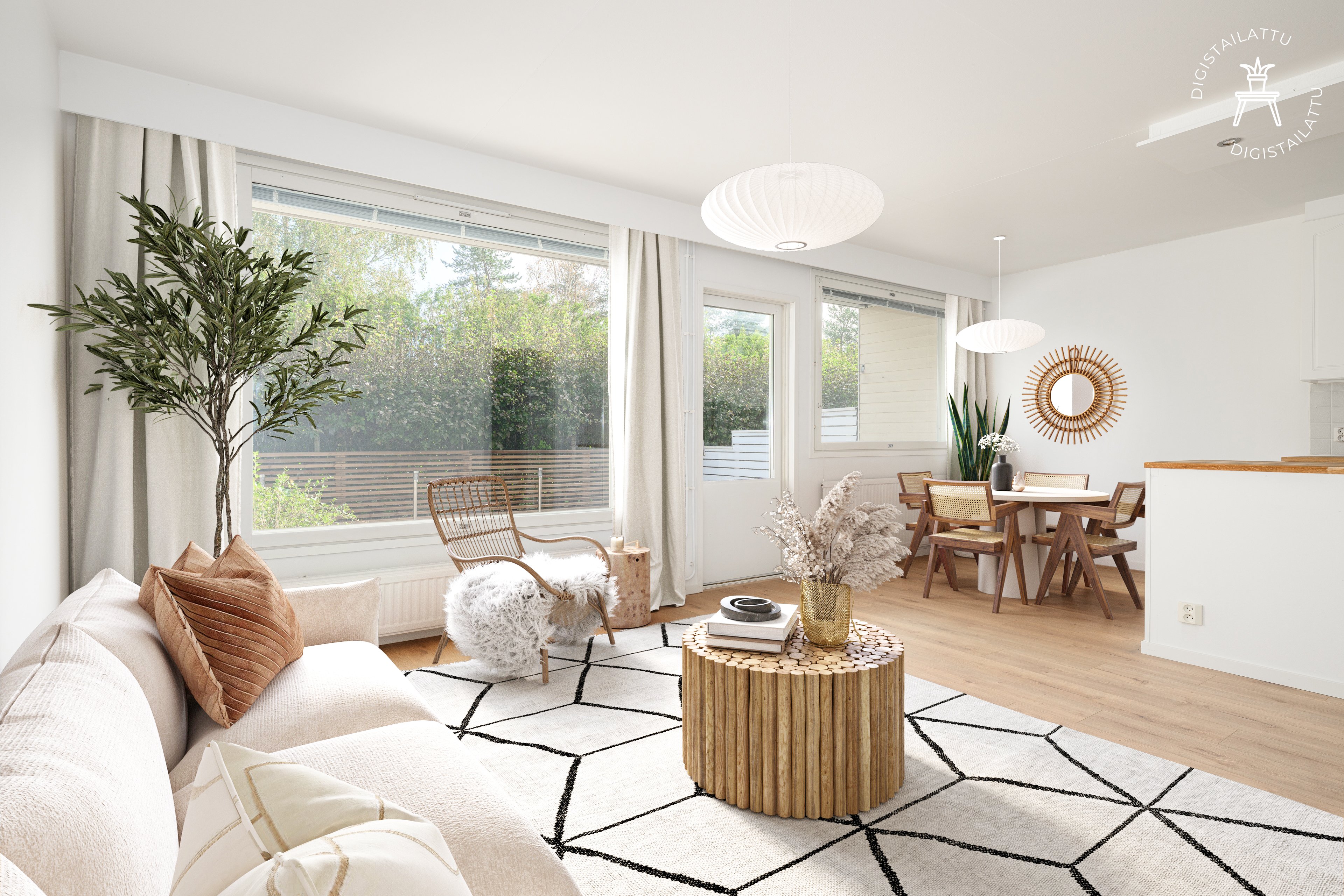 Tämä modernilla pohjaratkaisulla varustettu rivitalokoti hurmaa avaralla olohuoneen ja keittiön yhdistelmällä, joka jatkuu omalle viihtyisälle ja suojaisalle takapihalle. Tilava kylpyhuone, makuuhuoneen kiinteät kaapistot ja huolellisesti tehdyt pintaremontit tekevät arjesta sujuvaa ja miellyttävää.