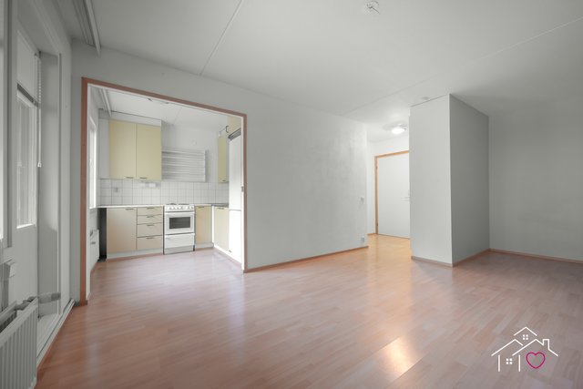 - Olohuoneen yhteydessä on alkovi ja lasitettu tilava parveke. Olohuoneen/alkovin lattia on laminaattia ja seinät on maalattu.