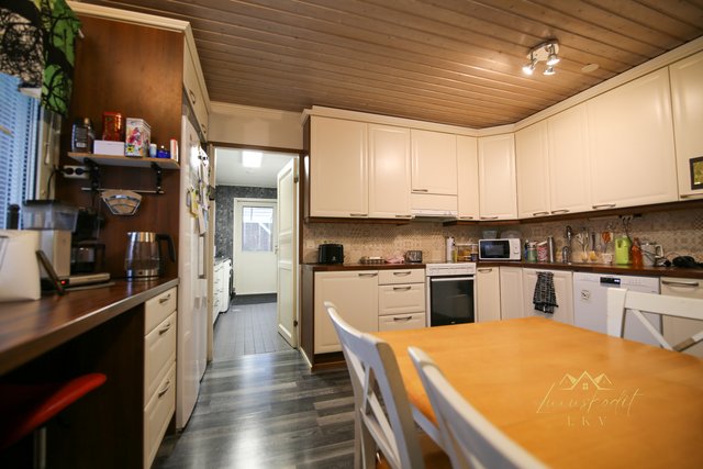 Kodissa on tilava olohuone, jossa voi nauttia takkatulen lämmöstä, ja keittiö, jossa on uusitut kodinkoneet vuodelta 2022. Neljä huonetta ja käytännöllinen kodinhoitohuone tarjoavat tilaa koko perheelle.