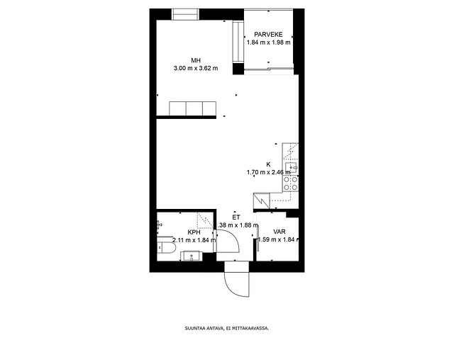 2h+avok+kph+lasitettu parveke (YJ mukaan 2h+kt+parveke)