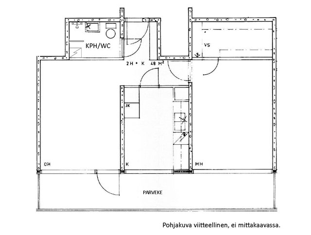 2h+k+ph/wc+vaatehuone+iso huoneiston levyinen parveke