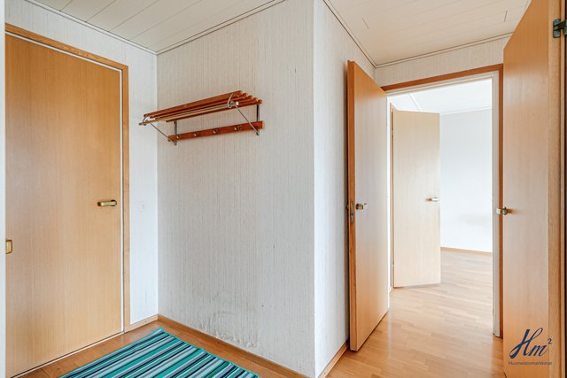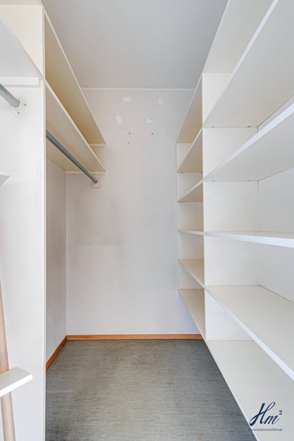 Asunnon pohjaratkaisu on toimiva ja tilava vaatehuone lisää säilytystilaa.