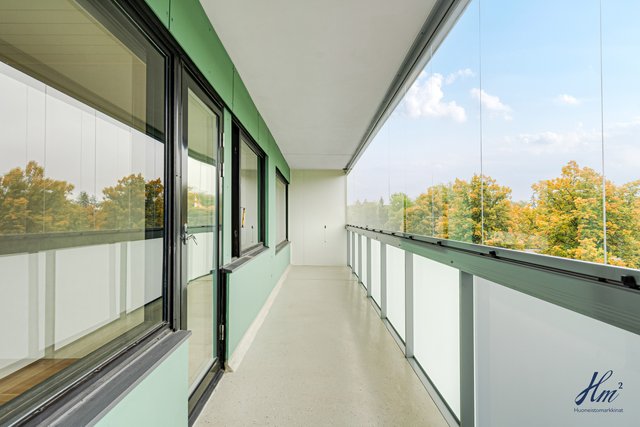 - Todella tilava huoneiston levyinen lasitettu parveke n. 14.5 m².