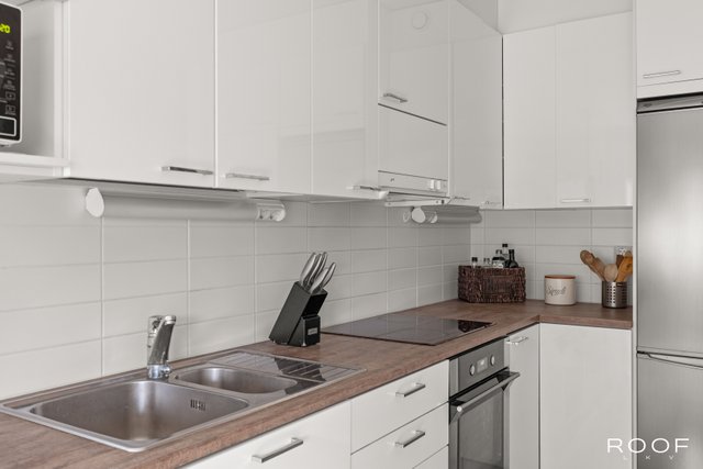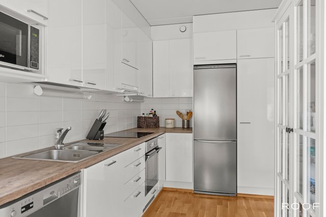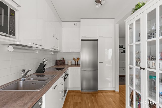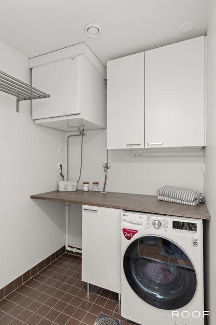 - Kaapistot, pesukoneliitäntä, tila pesukoneelle ja kuivausrummulle, ilmanvaihtokone ja pyyhekuivain.