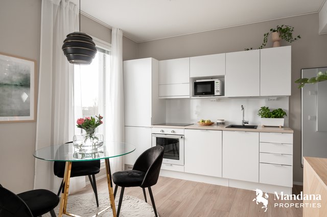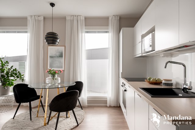 Tässä todellinen tilaisuus sinulle, joka etsit muuttovalmista ja kompaktia saunallista kotia toimivien kulkuyhteyksien varrella. Tässä asunnossa huomio kiinnittyy erityisesti valtavan kokoiseen, yli 13 neliöiseen lasitettuun parvekkeeseen, joka aukeaa länteen, eli ilta-aurinkoon. Kirsikkana kakun päällä ovat pohjaratkaisu ja materiaalivalinnat, jotka luovat yhdessä todella harmonisen ja toimivan kokonaisuuden.