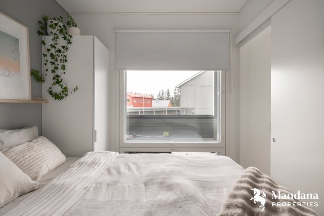 - VARUSTUS: Kaapit, ikkunassa pimentävä rullaverho. SEINÄT: Maali. LATTIA: Laminaatti.