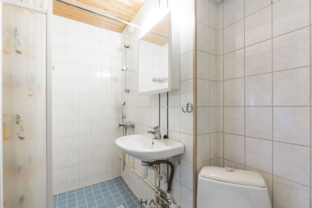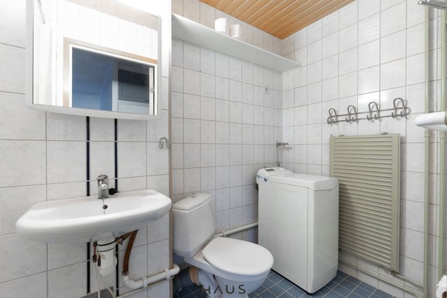 - WC-istuin, suihku, pesukoneliitäntä, peili, ja pesuallas