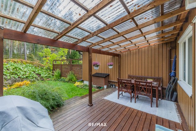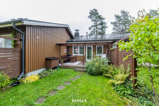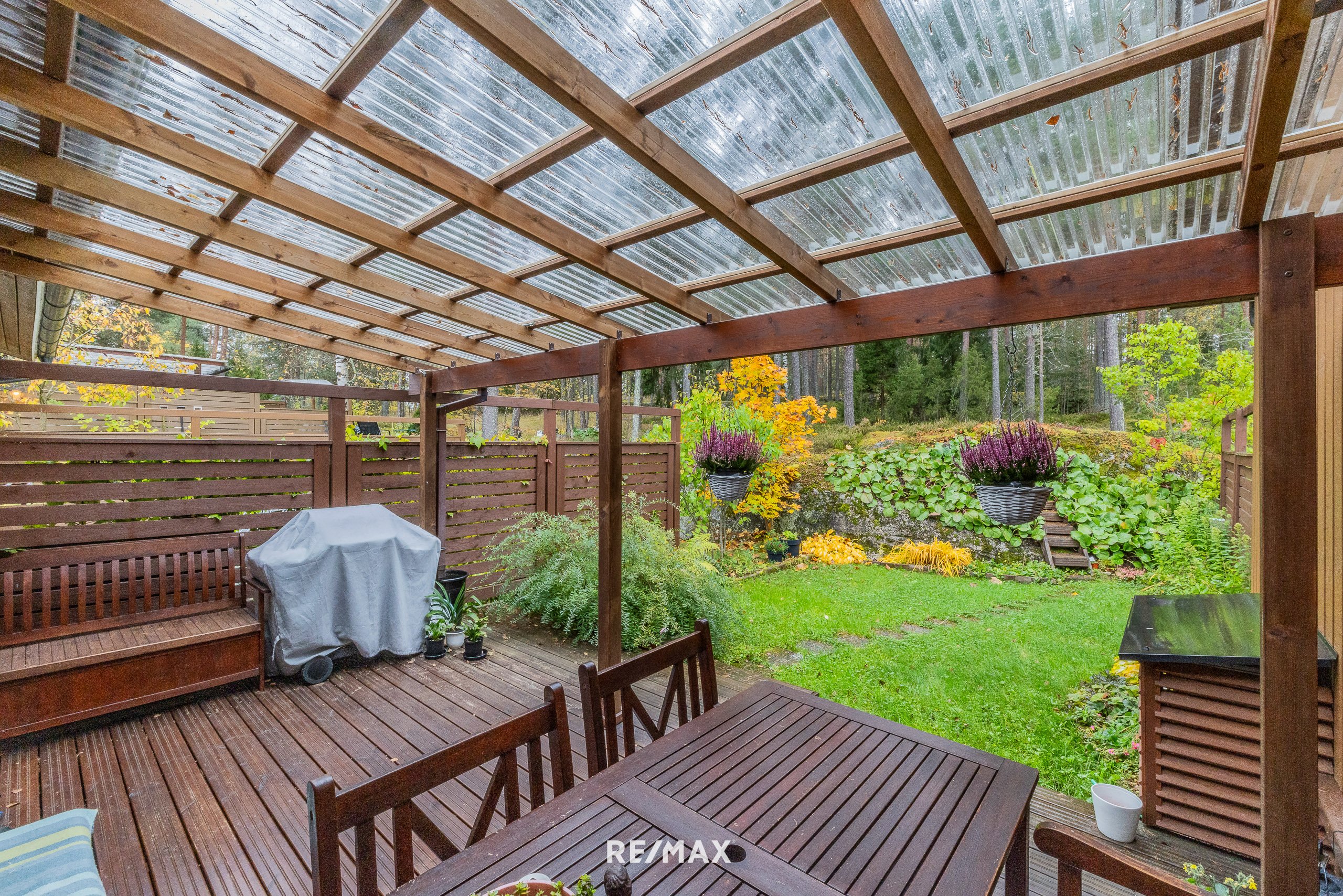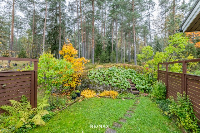 Asunnon piha rajoittuu metsään, mikä tarjoaa erinomaisen viihtyvyyden metsän välittömässä läheisyydessä sekä mahdollisuuden kulkea kulkea luonnossa suoraan kotipihalta.