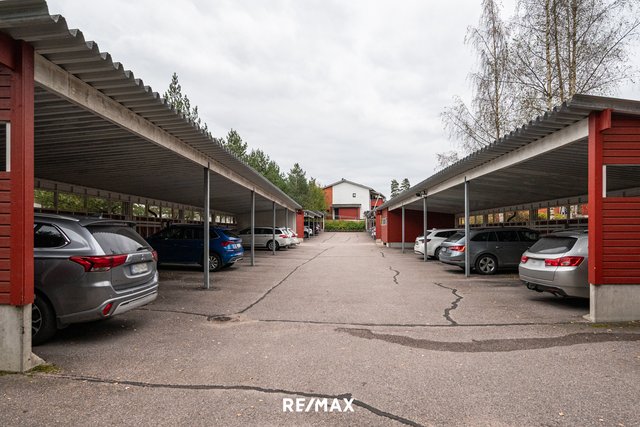 - Kullekin huoneistolle on osoitettu yksi eristämätön varasto n. (4 m2) sisäänkäynnin yhteydessä ja yksi autopaikka yhtiön omistamissa autokatoksissa. Kaikki autokatokset on varustettu autonlämmityspistokkeilla ja osa osakkaiden yhtiön luvalla asentamilla latauspistokkeilla/kulutusmittareilla. Huoneiston autokatokseen on asennettu latauspistoke/kulutusmittari, joka sallii myös sähköauton / hybridin hidaslatauksen omasta tolpasta. Lataus maksetaan itse kulutuksen mukaan.
