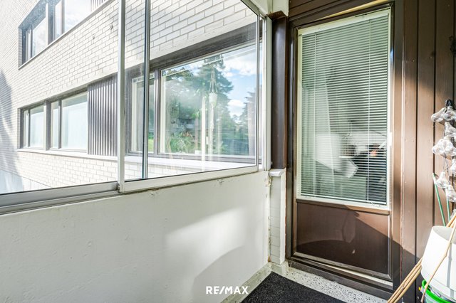 Asunnossa on selkeä ja toimiva pohjaratkaisu. Olohuone ja makuuhuone ovat tilavia, ja etelään avautuva lasitettu parveke tuo mukavasti valoa ja lisätilaa oleskeluun. Keittiö on varusteltu nykyaikaisilla kodinkoneilla, kuten amerikkalaisella jääkaappi-pakastimella ja astianpesukoneella. Makuuhuoneessa on parkettilattia ja olohuoneessa laminaatti, jotka luovat lämpimän ja siistin ilmeen.