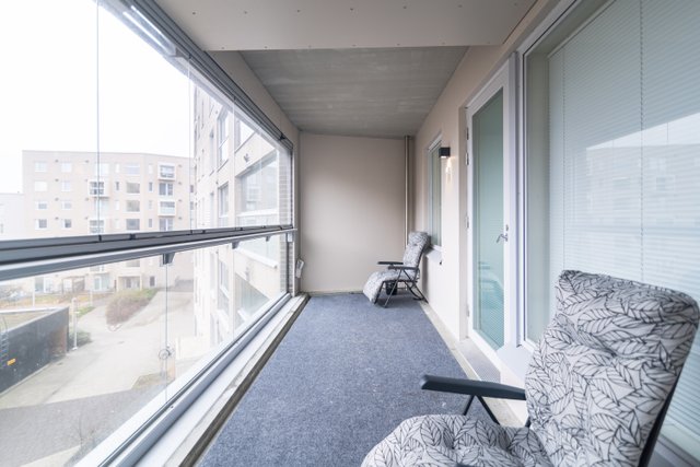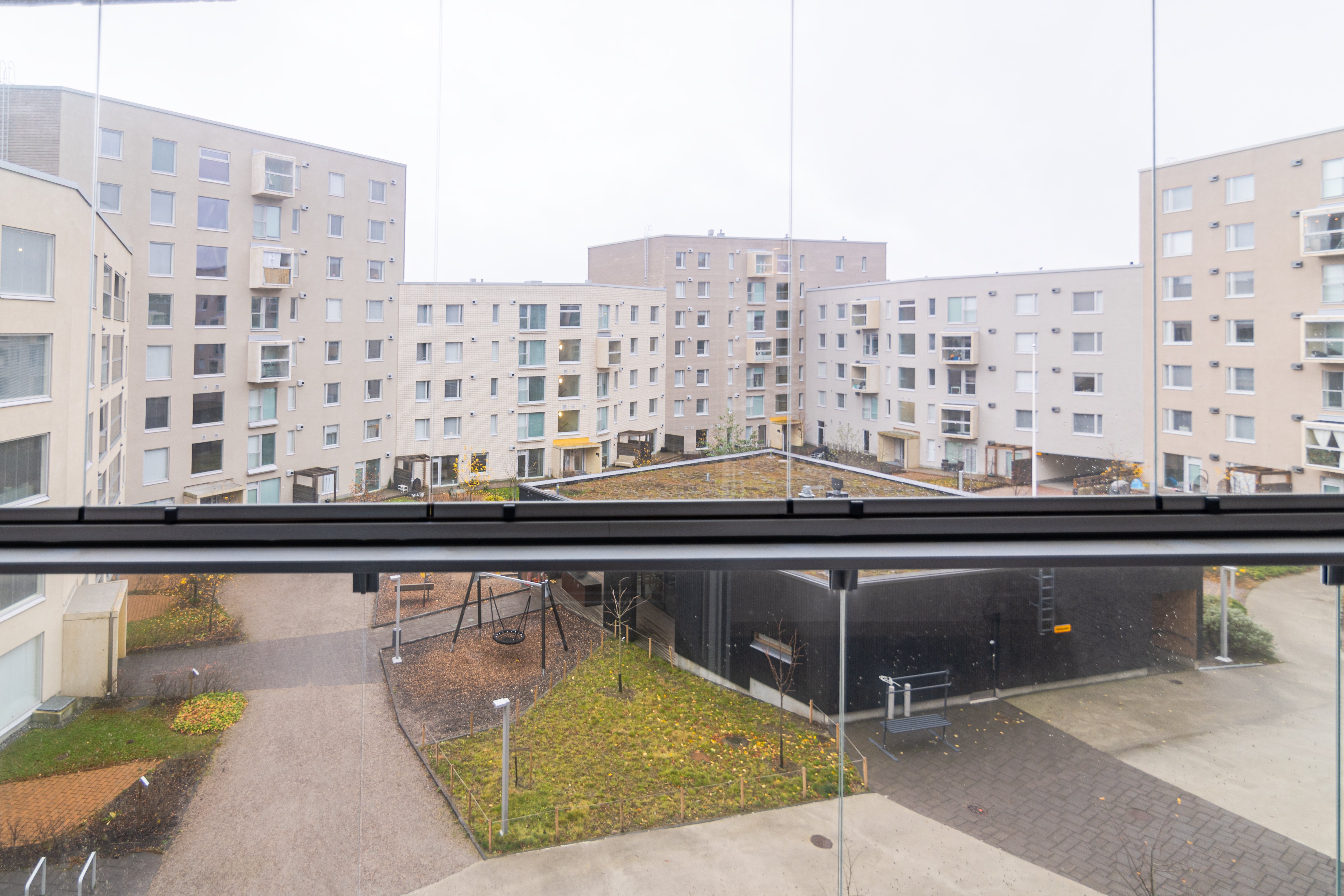 Asunto sijaitsee neljännessä kerroksessa, ja sieltä avautuu piha näkymät lasitetulta parvekkeelta. Hyvin suunniteltu pohjaratkaisu ja runsaasti luonnonvaloa tekevät tästä kodista erityisen viihtyisän. Taloyhtiössä on hissi, mikä helpottaa arkea.