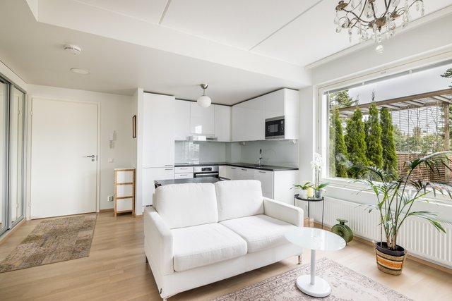 Kutomotie 14:ssä, Pitäjänmäen yritysalueella, odottaa viehättävä kaksio uutta omistajaa. Tämä moderni ja valoisa asunto on rakennettu vuonna 2017, ja se tarjoaa mukavan yhdistelmän kaupunkiasumista ja luonnonläheisyyttä. Asunnon avara oleskelutila yhdistyy saumattomasti avokeittiöön, jossa on runsaasti kaappi- ja laskutilaa. Makuuhuoneesta pääsee suoraan tilavalle, aidatulle terassipihalle, joka tarjoaa rauhallisen paikan rentoutumiseen.