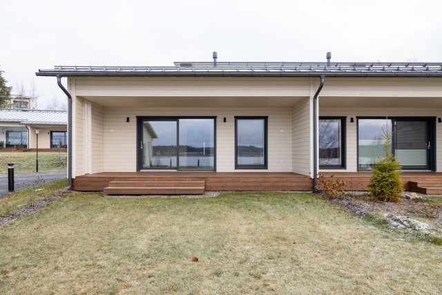 Tervetuloa asumaan järven äärelle, jossa arki ja rauha kohtaavat. Tämä valoisa ja laadukkaasti sisustettu rivitaloasunto tarjoaa modernia mukavuutta parhaimmillaan: asumismukavuutta tuovat lattialämmitys, suuret ikkunat sekä lasiliukuovet, jotka johdattavat sinut omalle terassille – suoraan avautuvaan järvimaisemaan ja ilta-auringon lämpöön.