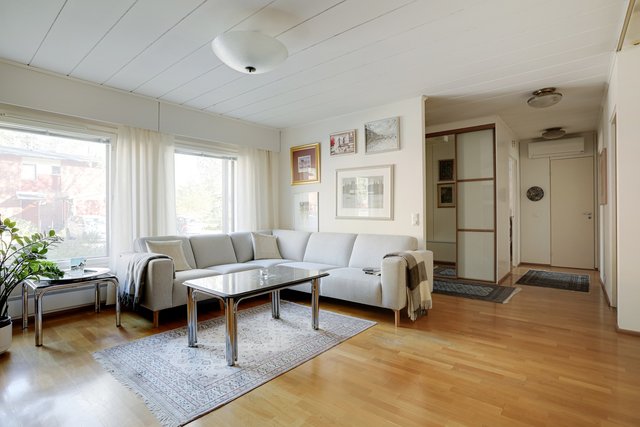 Tämä yhden kerroksen koti on rakennettu vuonna 1974, mutta sitä on laajalti peruskorjattu vuosien varrella ja sitä on tosiaankin vaalittu vuosien varrella. Ollut samoilla omistajilla alusta lähtien.