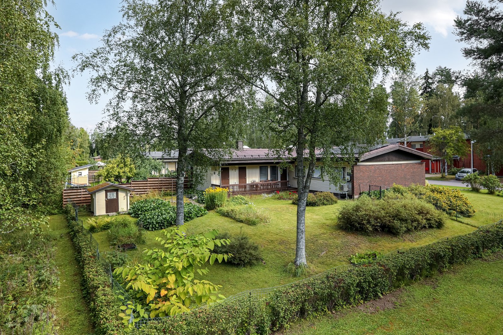 Tontti on oma, ja sen koko on 806 m², mikä tarjoaa runsaasti tilaa ulkoiluun ja puutarhanhoitoon. Lisäksi talossa on autotalli ja kylmä pihavarasto. Sijainti on erinomainen: lähellä kaupunkia, mutta silti rauhallisella asuinalueella, josta on hyvät liikenneyhteydet ja puisto lähellä.