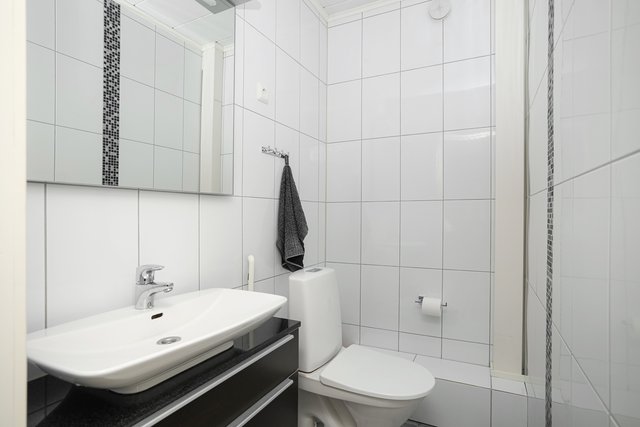 Talon lämmitys hoituu sähköllä ja ilmalämpöpumpulla sekä varaavalla takalla ja lisäksi aurinkopaneelit tuottavat lisäenergiaa. Kylpyhuone on kokonaan laatoitettu ja siitä on suora pääsy terassille, mikä tuo arkeen ripauksen ylellisyyttä.