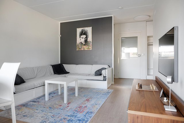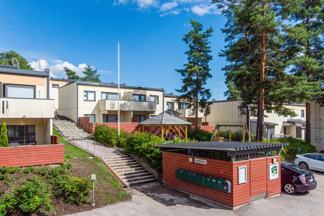 Vuosien saatossa remontoitu kolmen makuuhuoneen perheasunto, jossa on tilaa viihtyä suuremmallekin perheelle. Pohjaratkaisu on hauskasti tavanomaisesta poikkeava; sisääntulokerros käsittää perheen yhteiset oleskelutilat, kun taas makuuhuoneet ja peseytymistilat on sijoitettu alakerran rauhaan.  Rinteeseen rakennettu talo tarjoaa molemmista kerroksista uloskäynnin ja lisäksi olohuoneen yhteyteen ihanan suuren aurinkoparvekkeen.