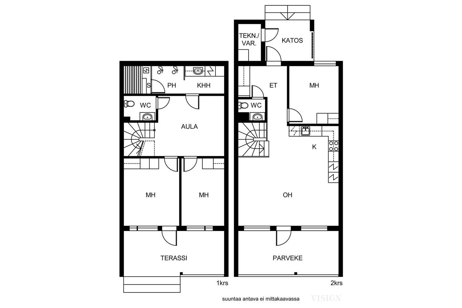 - Huoneistojen yhteydessä on niihin kuuluva puolilämmin varasto-/tekniikkatila.