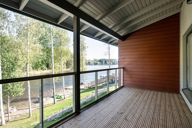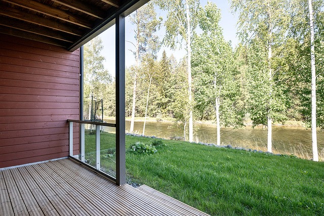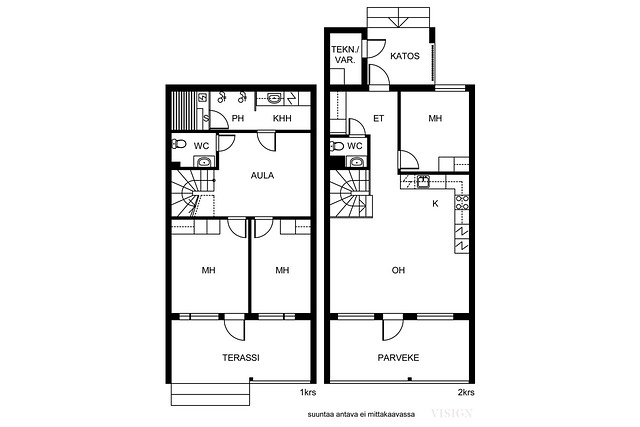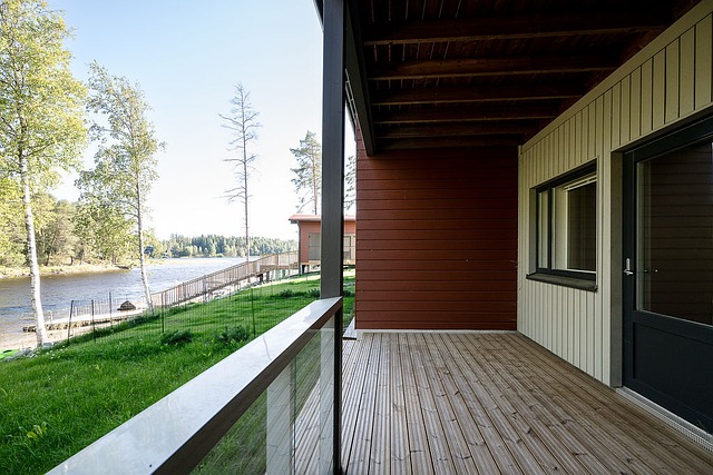 - Huoneistolla on yläkerrassa parveke ja alakerrassa terassi. Parvekkeilla ja takaterasseilla on lasikaide.