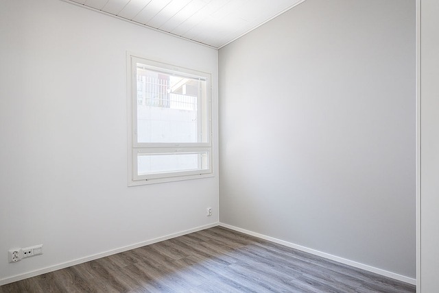 - Lattia: vinyyli, käsitelty puinen jalkalista, valkea Seinät: maalattu, valkea. Yksi seinä tehostemaalattuna vakiovärikartan, HR3 mukaisella maalilla. Katto: mdf-paneeli, valkea Varusteet: valkoiset säleverhot