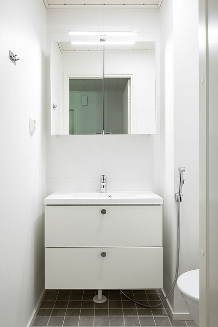 - Suihku, lattialämmitys, pesukoneliitäntä, suihkuseinä, allaskaappi, ja kiinteät valaisimet