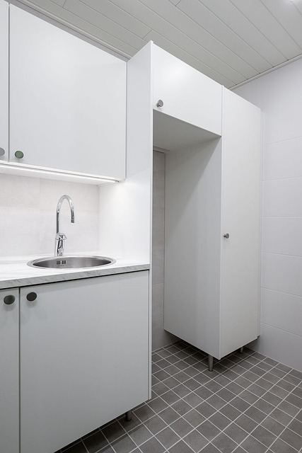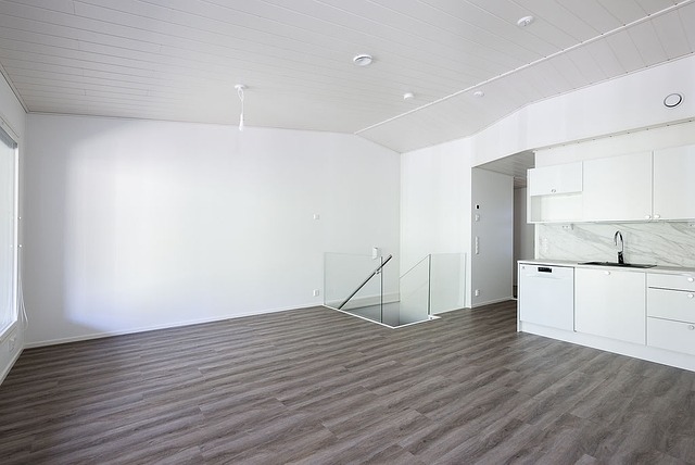 - Lattia: vinyyli, käsitelty puinen jalkalista, valkea Seinät: maalattu, valkea Katto: mdf-paneeli, valkea Kalusteet: tehdasvalmisteisia: vakiomallisia kiintokalusteita, joissa rungot valkoiset. Ovet, vetimet, suorareunaiset laminaattipintaiset pöytätasot sisustusesitteen valikoiman mukaan. Upotettava musta allas ja tilavaraus mikroaaltouunille. Kalusteväli: välitilalaminaatti Astianpesukone, jääkaappipakastin, induktioliesitaso, erillisuuni ja aktiivihiili liesikupu.
