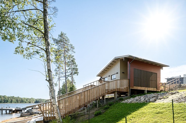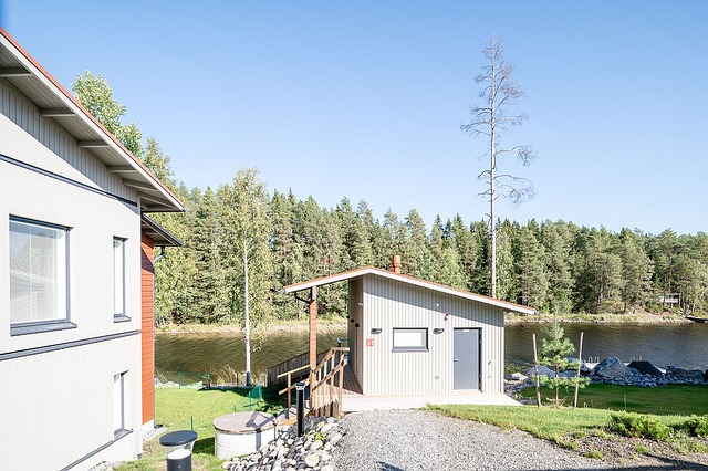 - Rantasauna ja laituri sijaitsevat asemapiirustuksessa esitetyssä paikassa. Rantasaunassa on sähkölämmitteinen kiuas. Laituri on pinta-alaltaan alle 20 m².