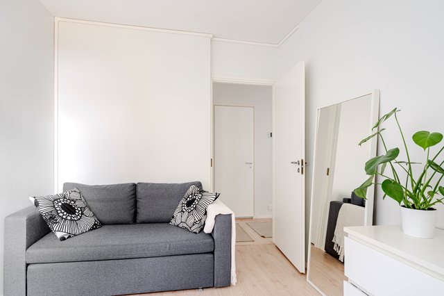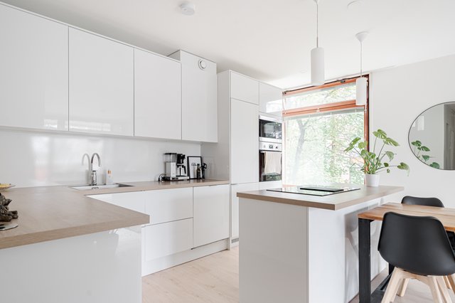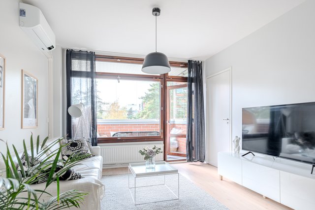 Valoisa ja muuttovalmis kulmahuoneisto Olarissa.