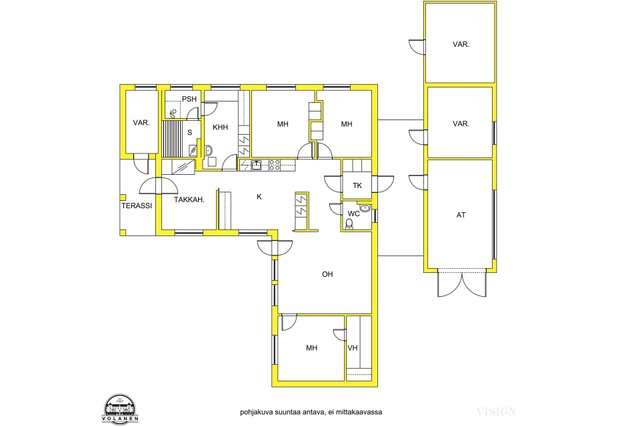 - Pinta-ala ei ole tarkistusmitattu ja todellinen pinta-ala voi olla suurempi tai pienempi, kuin ilmoitettu