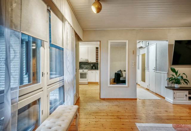 - Valoisa olohuone jonka jatkeena omassa rauhassa 1 makuuhuone vaatehuoeella.