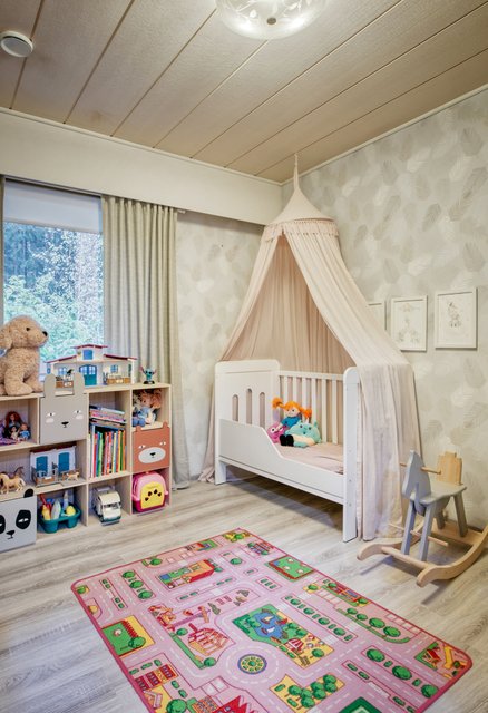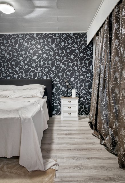 - Makuuhuoneissa lattiamateriaalina laminaatti.