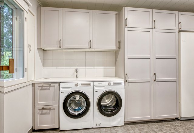 - Tilava vuonna 2023 uusittu kodinhoitohuone jossa runsaasti säilytystilaa.