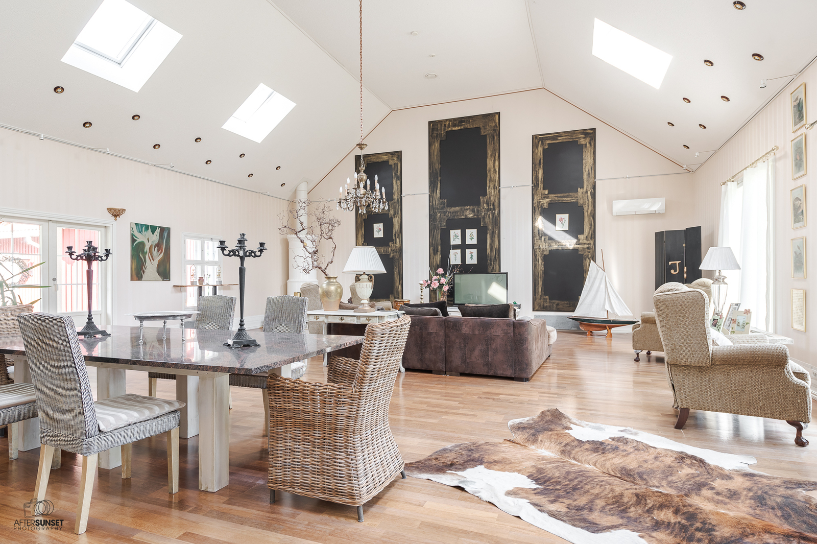 Alakerrasta löytyy runsaasti tilaa mm. keittiön, ruokailutilan, kuin massiivisen 80m2 olohuoneen muodossa. Olohuone on laajennettu vuonna 2000, ja sinne on myös oma sisäänkäynti ulkoa. Tilassa voi pitää kaikkea aina tilitoimistosta kansantansseihin. Korkeuden puolesta olohuoneeseen voi tehdä halutessaan esimerkiksi parvista upean kokonaisuuden. Vain mielikuvitus on rajana käytön suhteen. Kaikki talon makuuhuoneet löytyvät yläkerrasta.