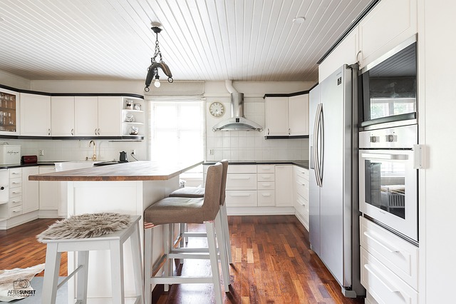 - Lattia parkettia. Seinät kaakelia, tapettia ja maalattu. Jääkaappi / pakastin, astianpesukone, liesikupu, liesituuletin, mikroaaltouuni, induktioliesi