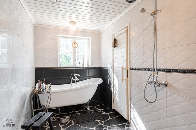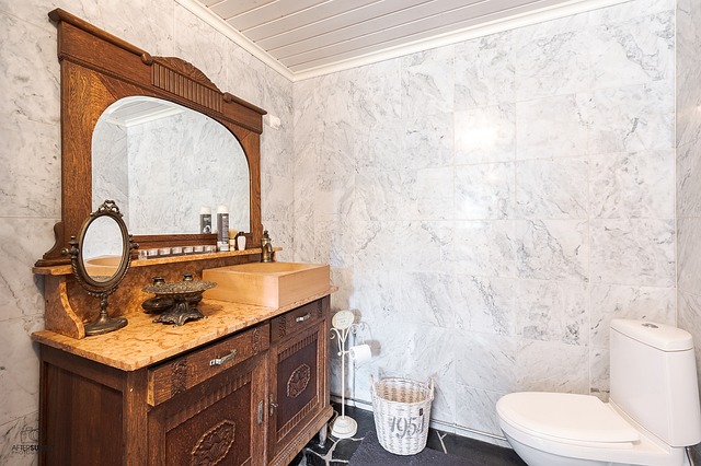 - Seinät osalaatoitusta ja marmorilaattaa. Lattia kiveä. Kylpyamme, lattialämmitys, peili, peilikaappi, suihku, wc.