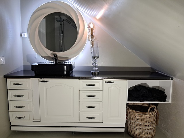 - Seinät kaakelia, Lattia laattaa. Lattiakaivo, peilikaappi, suihku
