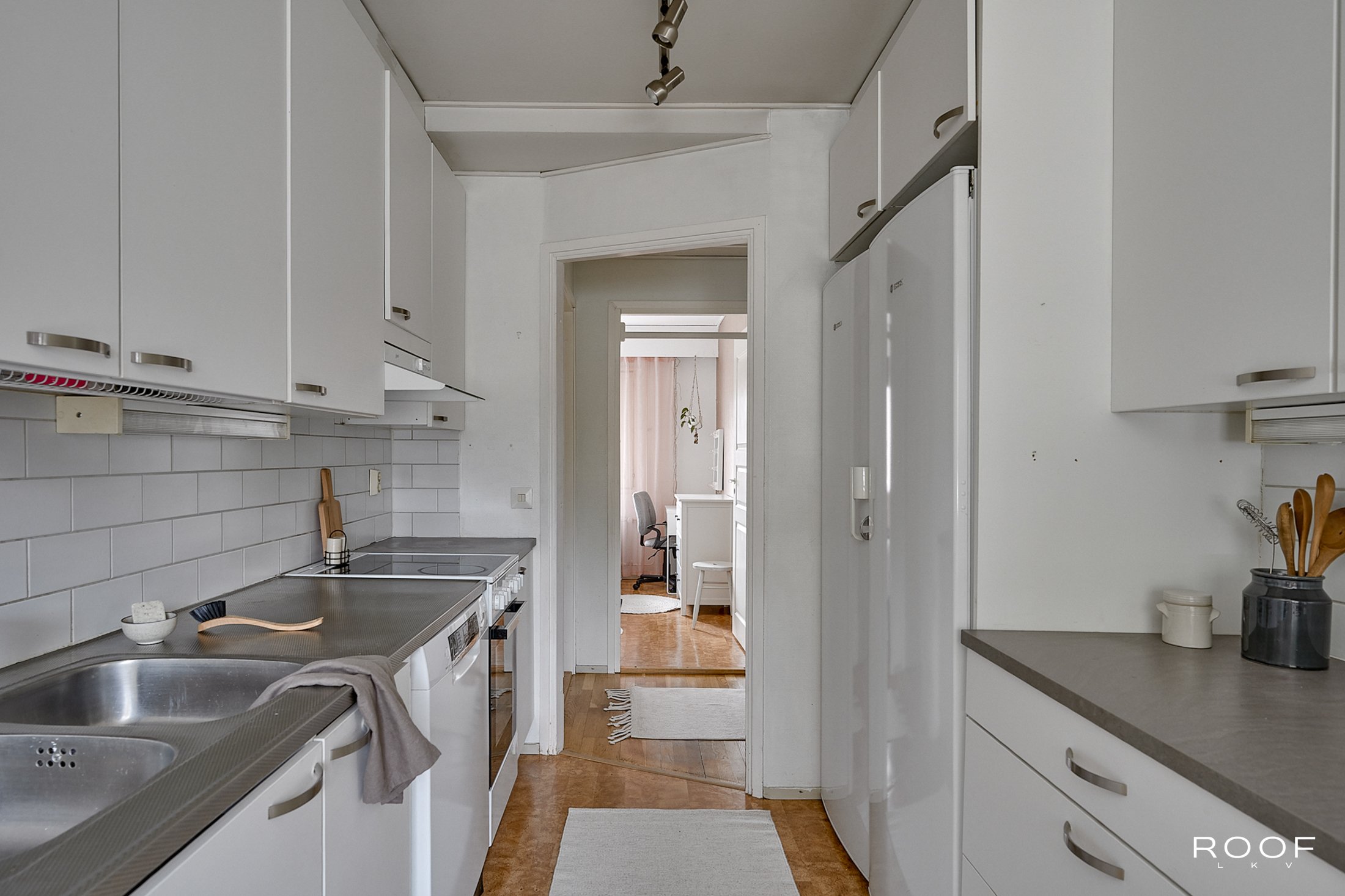 Taloyhtiössä on tehty merkittäviä parannuksia: käyttövesiputket on uusittu ja viimeisimpänä on valmistunut kattoremontti. Sijainti on rauhallinen, mutta palvelut ja hyvät kulkuyhteydet ovat lähellä. Päätyasunto tuo lisäbonuksena hieman enemmän yksityisyyttä – toimiva valinta sinulle, joka arvostat tilaa ja helppoa asumista.Pohjakuva