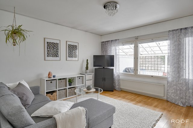 Tämä kolmen makuuhuoneen viihtyisä päätyasunto tarjoaa tilaa ja toimivuutta arkeen. Makuuhuoneet ovat reilun kokoisia. Kylpyhuone ja sauna on remontoitu vuonna 2021, joten pesutilat ovat nykyaikaiset ja siistit. Olohuoneesta avautuu käynti katetulle terassille. Asunnolle kuuluu oma autopaikka ja ulkovarasto, joka tuo kaivattua lisätilaa harrastusvälineille.